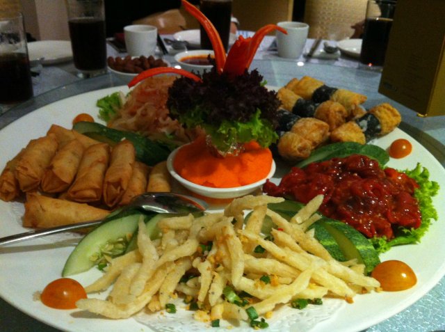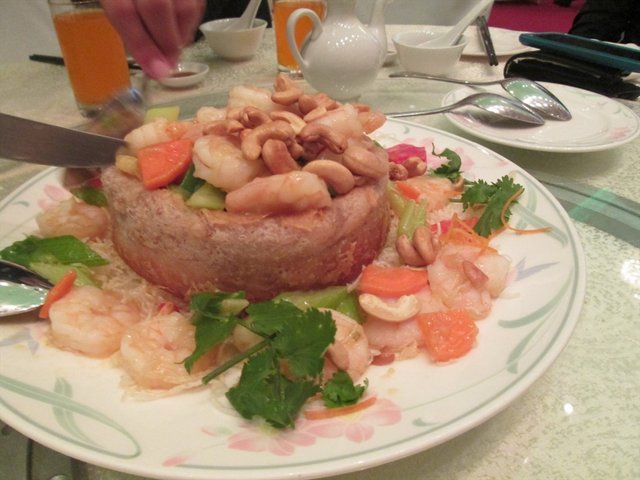 Tonight I am attending the PAYM Youth Awards Dinner which is held at the grand ballroom in Orchid Country Club. The event is attended by members of over 100 youth clubs in Singapore. Just for my club alone, we have 2 tables full of people, spread over 3-4 tables. The Guest of Honour for the event is Deputy Prime Minister Mr Tharman Shanmugaratnam.Chinese Cold Dish CombinationSalad Prawn, Deep Fried Scallop, Lobster Ball, Scrambled Eggs Shark's FinThe dinner finally starts at 8.30pm with this dish. Most of us are too hungry by then and we just attack the food.Braised Shark's Fin with CrabmeatCan barely see any shark's fin in the soup.Crispy Roast ChickenMost of us just attack the crispy and tasty prawn crackers first.Steamed Seabass "Teochew Style"Nice of the staff to cut the fish up and serves individually on plates.Stuffed Yam Ring with Shrimps and Cashew NutsThe staff cuts up the yam ring so that we can pick up the pieces easily. Thoughtful. Like that the yam ring is crispy outside and soft inside.Braised Black Mushroom with SpinachBraised Ee Fu Noodle with Yellow ChivesIt is quite a well braised dish, while looking simple.Mango PuddingIt is more like yellow coloured jelly topped with sweeten canned fruit cocktail. Barely any mango flavour in the pudding.Overall the food is ok. Service is not bad, with drinks refilled and cutlery changes regularly.…查看更多