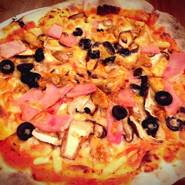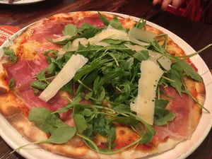 Benvenuto! (Welcome in Italian.) The motto of Peperoni Pizzeria, from Les Amis Group. Peperoni @ Frankel is the third branch of Peperoni when they expand their dough kneading adventure to the east side of Singapore. This is actually our first visit to the east branch. We were looking for a place to catch up with our friends D&C, and after shortlisting a few restaurants, we decided on Peperoni. As it was on Monday night, we manage to find parking at the roadside with ease. Once we start chatting, D&C told us that they had Peperoni at Suntec the night before with their family, however, since the pizza is good, they don't mind to have another round. Peperoni @ Frankel looks very casual and Italian. The colours of Italian national flags of green, white and red are well represented in the establishment. The entrance is painted in green, the walls are painted in white, while the chairs and wood fire oven are red. Both the chairs and wood fire oven are so eye catching, you won't miss them.For starters, we decided on Prosciutto Crudo di Parma & Melone ($18), Mozzarella Fasciatta Con Prosciutto ($18), and Wedges ($8). Prosciutto Crudo di Parma & Melone is the traditional pairing of Prosciutto di parma and rock melon. The combination of salty and sweet from these two ingredients are just irresistible. The Prosciutto flavour is just intense, multi layer but the best part it just melts in your mouth. The rock melon is a bit small in size though. Mozzarella Fasciatta Con Prosciutto is pan fried mozzarella wrapped with Parma ham. The prosciutto is cover the chewy but soft mozzarella nicely and has a crispy texture from the pan fried. The glaze of balsamic vinegar on top of it, just seal the deal. It helps to counter the intense saltiness from prosciutto while bind the whole ingredients together, especially with the rocket salad. Big thumb-up from LD.The wedges has a crispy texture on coating, with a nice seasoning and soft on the inside. Served with mayonnaise as a dipping sauce although sour cream will taste better with it. Actually a good food for the little ones if they don't like pizza.For the pizzas, we ordered 2 large pizzas of half and half ($24 each). The first combination is Fungi & Margerita - Button, shitake & porcini mushrooms; Mozzarella 'di bufala', cherry tomatoes, basil and oregano. The pizza base is thin and crispy. The toppings are generous combine with cheese and tomato sauce is just create a juicy toppings. The fungi and margerita pizza just allow its natural ingredients to speak for it self. The second combination is Pancetta & Prosciutto Crudo di Parma - cured bacon, sliced tomatoes and egg; Parma ham and rocket salad. This pizza has more intense salty flavour because of the cured meat. The egg and rocket salad on each size of the pizza helps to counter the saltiness, but this combination just 'scream' meat, cured meat & meat; and I simply love it. Satisfied with the mains, we took our time before we move to desserts. Creme Brulee ($9) and Tortino al Cioccolato ($13) - rich molten valrhona chocolate cake served with strawberry ice cream.The crème brulee has a nice thin layer of caramelized sugar. The custard however is more dense in texture which constrain us to taste full taste of the custard. For the Tortino, it is actually suppose to come with vanilla ice cream, however they are kind enough to switch ours to strawberry. The molten chocolate cake is overcook, no chocolate ooze out when we cut through the cake. Meanwhile, the strawberry ice cream with the walnut crust was just superb to compensate the disappointing chocolate cake. If you are looking for a non alcoholic drink, give Gunner ($7) a try. The combination of Ginger Ale, Ginger Beer and Agostura Bitter is just refreshing. Considering this is a Les Amis group establishment, there are works needed to be done on their the service side. During the dinner we were served by two service staff, one of them is very friendly and attentive, while the other was just grumpy with a don't care attitude. Hopefully, they can deliver more consistent service standard. After all, they are the Les Amis Group.Overall, when it come to Entrees and Pizzas, they are almost faultless. This has been the case in their other establishment as well. The desserts need some fine tuning, but the ice cream is just great. All we can say, if you are looking for a good pizza, Peperoni is one of the place. Saluti! Cheers!For the complete Chubby Botak Koala Dining experience, click / copy the link below to your browser:http://www.chubbybotakkoala.com/2013/11/peperoni-all-they-knead-is-love.html…查看更多
