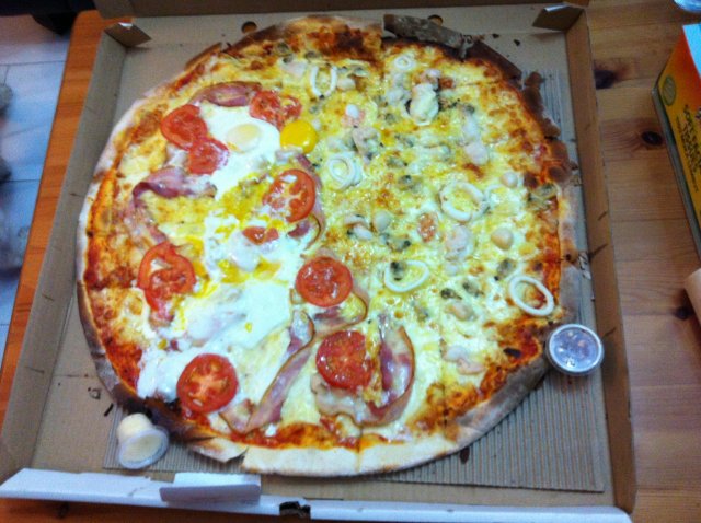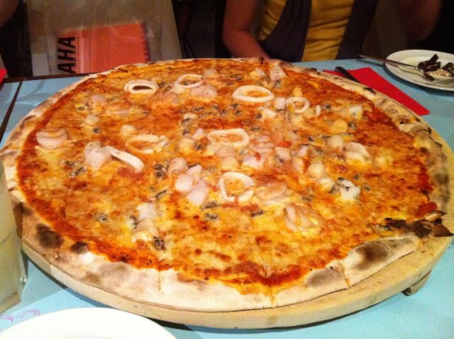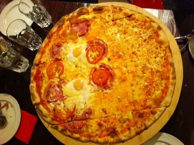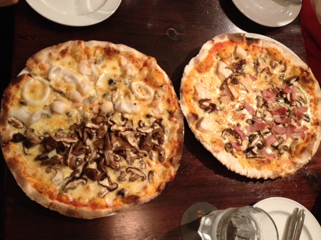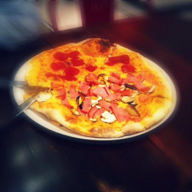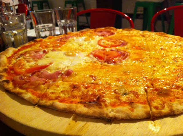 Benvenuto! (Welcome in Italian.) The motto of Peperoni Pizzeria, from Les Amis Group. Peperoni @ Frankel is the third branch of Peperoni when they expand their dough kneading adventure to the east side of Singapore. This is actually our first visit to the east branch. We were looking for a place to catch up with our friends D&C, and after shortlisting a few restaurants, we decided on Peperoni. As it was on Monday night, we manage to find parking at the roadside with ease. Once we start chatting, D&C told us that they had Peperoni at Suntec the night before with their family, however, since the pizza is good, they don't mind to have another round. Peperoni @ Frankel looks very casual and Italian. The colours of Italian national flags of green, white and red are well represented in the establishment. The entrance is painted in green, the walls are painted in white, while the chairs and wood fire oven are red. Both the chairs and wood fire oven are so eye catching, you won't miss them.For starters, we decided on Prosciutto Crudo di Parma & Melone ($18), Mozzarella Fasciatta Con Prosciutto ($18), and Wedges ($8). Prosciutto Crudo di Parma & Melone is the traditional pairing of Prosciutto di parma and rock melon. The combination of salty and sweet from these two ingredients are just irresistible. The Prosciutto flavour is just intense, multi layer but the best part it just melts in your mouth. The rock melon is a bit small in size though. Mozzarella Fasciatta Con Prosciutto is pan fried mozzarella wrapped with Parma ham. The prosciutto is cover the chewy but soft mozzarella nicely and has a crispy texture from the pan fried. The glaze of balsamic vinegar on top of it, just seal the deal. It helps to counter the intense saltiness from prosciutto while bind the whole ingredients together, especially with the rocket salad. Big thumb-up from LD.The wedges has a crispy texture on coating, with a nice seasoning and soft on the inside. Served with mayonnaise as a dipping sauce although sour cream will taste better with it. Actually a good food for the little ones if they don't like pizza.For the pizzas, we ordered 2 large pizzas of half and half ($24 each). The first combination is Fungi & Margerita - Button, shitake & porcini mushrooms; Mozzarella 'di bufala', cherry tomatoes, basil and oregano. The pizza base is thin and crispy. The toppings are generous combine with cheese and tomato sauce is just create a juicy toppings. The fungi and margerita pizza just allow its natural ingredients to speak for it self. The second combination is Pancetta & Prosciutto Crudo di Parma - cured bacon, sliced tomatoes and egg; Parma ham and rocket salad. This pizza has more intense salty flavour because of the cured meat. The egg and rocket salad on each size of the pizza helps to counter the saltiness, but this combination just 'scream' meat, cured meat & meat; and I simply love it. Satisfied with the mains, we took our time before we move to desserts. Creme Brulee ($9) and Tortino al Cioccolato ($13) - rich molten valrhona chocolate cake served with strawberry ice cream.The crème brulee has a nice thin layer of caramelized sugar. The custard however is more dense in texture which constrain us to taste full taste of the custard. For the Tortino, it is actually suppose to come with vanilla ice cream, however they are kind enough to switch ours to strawberry. The molten chocolate cake is overcook, no chocolate ooze out when we cut through the cake. Meanwhile, the strawberry ice cream with the walnut crust was just superb to compensate the disappointing chocolate cake. If you are looking for a non alcoholic drink, give Gunner ($7) a try. The combination of Ginger Ale, Ginger Beer and Agostura Bitter is just refreshing. Considering this is a Les Amis group establishment, there are works needed to be done on their the service side. During the dinner we were served by two service staff, one of them is very friendly and attentive, while the other was just grumpy with a don't care attitude. Hopefully, they can deliver more consistent service standard. After all, they are the Les Amis Group.Overall, when it come to Entrees and Pizzas, they are almost faultless. This has been the case in their other establishment as well. The desserts need some fine tuning, but the ice cream is just great. All we can say, if you are looking for a good pizza, Peperoni is one of the place. Saluti! Cheers!For the complete Chubby Botak Koala Dining experience, click / copy the link below to your browser:http://www.chubbybotakkoala.com/2013/11/peperoni-all-they-knead-is-love.html…查看更多