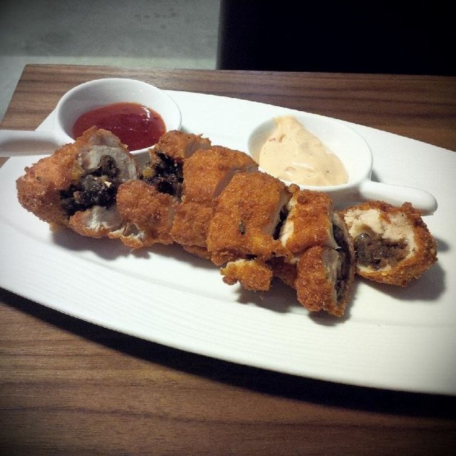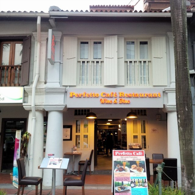 A 2-months old baby cafe is born - amongst the popular hipster street filled with cafes and bars. Perfetto Cafe is set in a spartan, no-fuss, rustic style, preferring non-pretentious comfort and good food to be its trademark over a glamorous setting. It occupies 2 stories at 11 Bussorah Street - the upper level reserved for events and functions at this juncture.We kickstarted the tasting session with Stuffed Chicken Roll (SGD$7.90) - chicken roll with crispy skin, stuffed with special-reciped beef. The golden skin was crackling deliciously when bitten into; the teeth sinks deeper into tender flesh, until it reaches the almost mushy beef stuffings - saccharine, delicious, enhancing the subtle flavour of the chicken. A fabulous starter - but one has to take heed when consuming it because there are tiny toothpicks within the rolls holding the duo-meat intact, so don't poke your mouth please.Shrimp Baked Rice (SGD$13.90) was piquant in its fragrance, shrimp sweetness wafting through the air, evoking hunger pangs. The mozarella cheese layer was baked till a crusty golden brown, coating the rice and scrumptious shrimp balls. It is my first time trying this innovative shrimp baked rice dish, and definitely an unforgettable taste that keeps me craving for more the very next day.We loved the Rack of Lamb (SGD$23.90) as well, asking for seconds because it was simply delectable. These lamb racks had no gamey taste at all - not a hint, therefore mint jelly was not necessary. The flesh was roasted to a slightly-charred, crispy exterior with very succulent and well-moistened interior walls of flesh.Triple Scoops Gelato Belgium Waffles (SGD$13.90 each) were served next, with different-flavoured gelato for sharing. The chocolate flavour was my favorite - rich and dark in tones. The waffles had a good buttery taste to them, as well as fluffy textures.For full review and more detailed information, please feel free to refer:http://thearcticstar.blogspot.sg/2015/08/media-invite-dinner-at-perfetto-cafe.html…查看更多