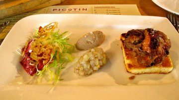 Tucked away in a serene and quiet Bukit Timah neighborhood, Picotin is an unassuming restaurant with indoor and outdoor seating, a great selection of wines and a lovely food selection.Picotin has been one of my favourites ever since I'd tried one of their incredibly enormous pizzas for S$49. I returned to Picotin for the second try to sample their duck confit, as I am quite a fan of the dish and am always on a lookout for the best duck confit in the city.While not the best, definitely a top three for me - the duck confit was tender on the inside with a crispy crust on the outside. just the way duck confit should be. My companion had beef bourguignon which, he said, had a tad of a strong beef after taste. However, after trying it myself, I found the beef to be delectible and the beef tenderized and cooked to perfection.After my second visit, I can say with assurance that I will definitely return to Picotin to sample their many wines and enjoy the duck confit again.…查看更多
