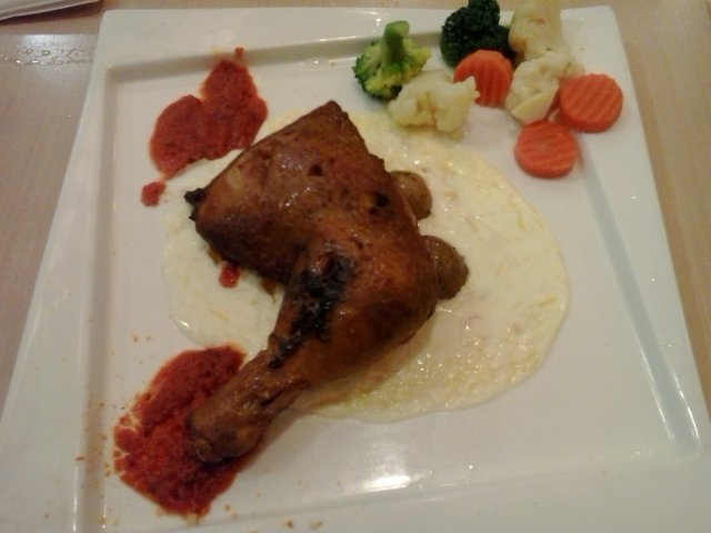 Garlic Crusted Bake FishThe fish was nicely done – crispy on the outside (partially due to the garlic crust) and succulent on the inside. My only gripe was with the cream sauce which was somehow too thick and overpowering. Roasted Chicken LegRoasted to perfection, the meat was tender and flavouful. Again, the problem was with the thick cream sauce which overpowered the natural flavours of the Chicken. Would have been perfect if the portion was slightly bigger. In all, we had a satisfying dinner. Kudos to Pizza Hut for coming up with these delectable mains to complement their house speciality! …查看更多