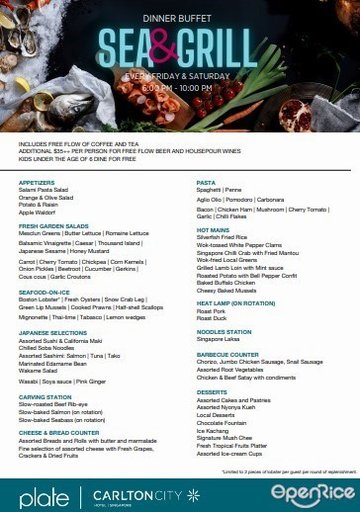 Having been to Plate @ Carlton City Hotel when it first opened, I was pleased to be heading back, this time for their buffet lunch for Chinese New Year. The usual buffet lunch for weekday is SGD$38.00++ but I believe the CNY menu now costs more. Service was rather professional and polite; they were also very efficient at clearing used plates.Ambience was as I remembered it - dimly-lit to create atmosphere, dark earthly hues to lend a sophisticated air, and well-spaced. Pool view was abundant on the front, and a beautiful alfresco terrace sits at the back. They serve International buffet for their lunch and dinner, but there's also an ala carte menu available if you would prefer not to have buffet.I started with some Seafood - mussels, scallops, prawns etc. The seafood was saccharine with sweetness, and flesh was springy.Sashimi and Sushi were next to the seafood section, and I enjoyed the items in this section as well - these were the 2 stations I refilled my plates with.The festive / Chinese New Year section comprised of Yam Ring stuffed with lots of other ingredients, fish, tofu, Sea Cucumber dishes, bak kwa dishes etc. There were also fragrant (lotus leaf?) Glutinuous Rice.Finally, desserts. I loved this section because there were lots of variety - from cakes and kuehs to Chinese dessert soup to Ice Kacang and ice-cream. The array of colorful sweet foods tantalised us even as we just looked at them; some of them were too sweet, but I liked the cakes.For full review and more detailed information, please feel free to visit:http://thearcticstar.blogspot.sg/2016/02/cny-buffet-lunch-at-plate-carlton-city.html…查看更多