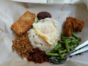 My first impression when I pass by this place is the long queue and also the fragrance of the rice. The rice is so fluffy, with many varieties of dishes. The chicken wings are so crunchy and make you want to eat more of it! The otah otah is also great, it has little spicy flavour. The fish cake & green bean also nice. For spicy lovers, add some chilli for great taste. This place opens at dinner-supper time