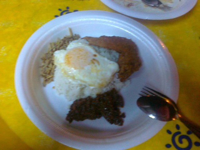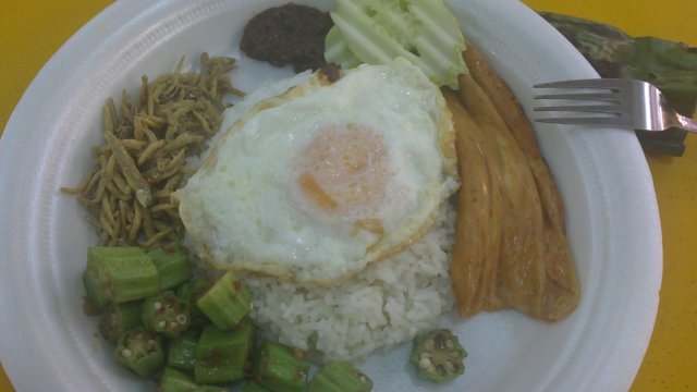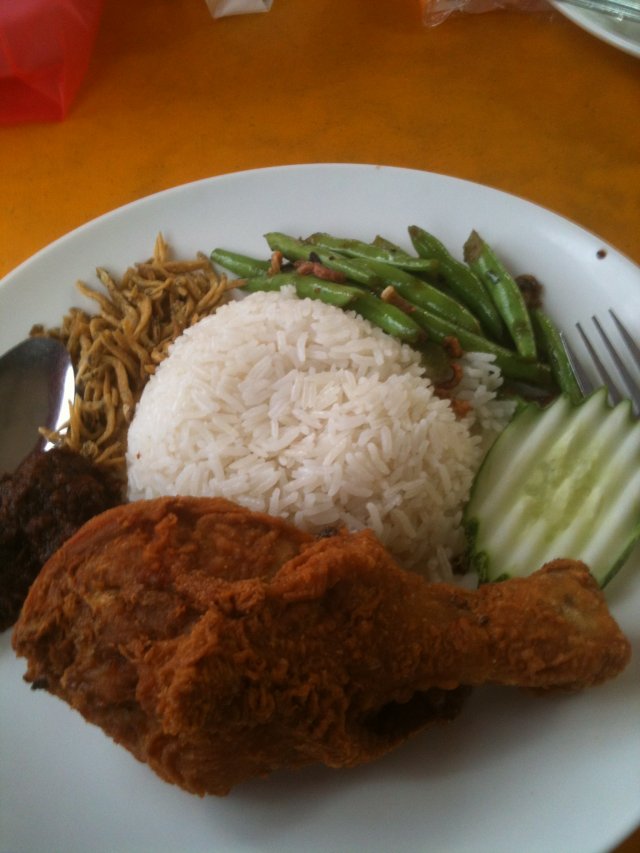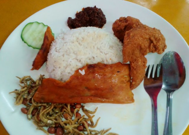 At peak dinner time, the eatery was very crowded. People were busy walking, queuing, ordering and eating, lively scene. Managed a basic of Mixed Spicy Rice, Ponggol Nasi Lemak Centre was famous at Singapore.It was definitely a best late supper place, especially for night-owls. Sweet sambal was fragrantly rich with not overly spicy, accommodate finely with coconut-aromatic rice. Chicken drumstick was golden-yellowish, crispy with toothy bite. Fried Fishballs and Grilled Otak were perfect side dishes, added points to dull-looking plate. Had to admit, the price was high but pay for quality here. …查看更多