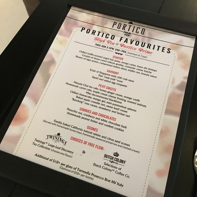 In such a frantic city and during such fast-paced times, it’s comforting to know that everything can still stop for tea. Located on the tranquil Dempsey Hill, Portico Prime has recently launch an afternoon tea that will engage the senses and revitalise weary soul.Diners can choose to enjoy their tête–à–tête session in Portico Prime’s gorgeous interior, or at the patio, amongst lush greenery.Its evident that much dedication has been put into the conceptualisation of the afternoon tea menu, Portico Favourites, a collection of well-loved dishes amongst Portico’s regular customers, staff and owners. Every item is made from scratch in house, using sustainable ingredients. The fresh herbs and edible flowers are harvested from Portico Prime’s gardens.Right off the bat, Portico Prime wowed us an appetizer trio of fine dining standards. The Chilled Truffle Scented Angel Hair Pasta is utterly divine! Not only is the truffle flavour prominent, the capellini is topped with a generous portion of avruga caviar and a crunchy kawa ebi shrimp. The Crostini of Asian-cured Salmon Gravlax with coriander creme fraiche was a refreshing change to the usual smoked salmon item typically present in afternoon tea sets. Another exceptional starter is the Skewer of Tiger Prawn, where the crustacean’s natural sweetness is highlighted by compressed melon sheet, tobiko roe and brandy sauce.The rest of the treats are presented on a pretty wooden stand, complete with faux grass.Savoury morsels include Chilli Crab Meat Eclair with a spicy kick, fluffy Fish Otak Otak Toast with crispy edges and Squid and Salted Egg Croquette that boast a delicious creamy core encased within a well-fried exterior which remained crisps despite a long photo taking session.Petite sweets are aplenty, in fact, they occupy 3 of the 4 tiers. The soft, yet dense and smooth Chilled Cheesecake comes with dollops of mango gel and mini passion fruit spheres that pop in the mouth. The Mini Deconstructed Blackforest and Baked Apple Crumble Tart with sweet basil cream were delightful too.Bandung Rose Cream fills up the buttery short crust pastry in the Strawberry and Lychee Tart while the White Chocolate Bark studded with pistachio nuts and cranberry, captivates with it’s dreamy soft consistency. I’m usually not a fan of carrot cakes (encountered too many dry, boring ones in the past) but Portico Prime’s Homemade Carrot Cake won my heart with its light, moist texture, and interesting pairing of maple cream cheese frosting.The homemade peanut butter and confetti cookies may look ordinary, but took us by surprise with its marvellous buttery and crumbly texture. I certainly wouldn’t mind having this on a daily basis for breakfast! The Marsala Chai Tea Cake with honey ginger cream and orange confit also left a lasting impression.The freshly baked California Natural Raisins and Citrus Peel Scones were served with homemade Kaya, seasonal preserves and clotted cream. The highlight here would definitely be the sugar-free Kaya, made using honey that is locally produced. I could do with some plain scones though, as the raisins and citrus peel in the scones distract the taste buds from enjoying the Kaya to the fullest.Portico Prime’s afternoon tea is available from 3pm-5pm daily (except Monday), is priced at $48 per pax (min 2 to dine) and includes free-flow Twinnings Tea or Dutch Colony Coffee Co. Anyone looking for an extra oomph of luxury can opt for a glass of Torresella Prosecco Brut NV Italy bubbly for an additional $10. Reservations are highly recommended as there are only 30 sets available each day. From now till 30th April 2016, book via Chope to enjoy the afternoon tea at only $38 per person.…查看更多
