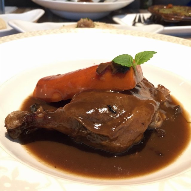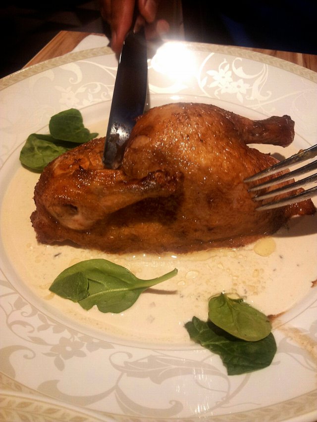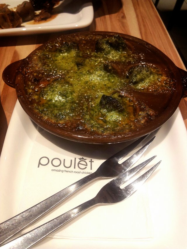 Being a frequent diner at Poulet, I have tried most of the items in their menu. Following the majority, we visited their Chinatown Point outlet for a birthday lunch celebration.Celebration starts with their popular entree and soup.French Onion Soup (S$5.90)Beef stock with caramelised french onion topped with cheese croutons, this taste a little more sour than what I have tasted before.Escargot De Bourgogne (S$8.90)Burgundy snails with tomato fondue and almond garlic butter. This is piping hot when served and the escargots matches well with the tomato and garlic butter maintaining the standard of this dish.Two sides to go along with the meal.French Fries (S4.90)Birthday girl's favourite. It's really scorching hot so be extra careful when you bite it.Marron Rice (S2.90)Chestnut rice is a little dry in texture but its so fragrant that will make you finish it.Here comes our gluttonous order.Braised Pork Belly (S$15.90)Served with mashed potato, baby spinach and double mustard, the pork belly is tender even the fatty part is melting and not oily at all.Mushroom Pissaladiere (S$11.90)Oven baked pastry topped with caramelised onion jam and button mushrooms. Fluffy and crispy pastry base is the main attraction of this with all the toppings complementing it.Poulet Roti with Mushroom Chardonnay Sauce (S$15.90) - HalfThe famous poulet roti in creamy homemade fresh button mushroom chardonnay sauce. Tender and flavourful chicken with the creamy sauce enhancing it. Sauce is really creamy, opt for other sauce if you can't take creamy stuff.Duck Au Vin (S$15.90)Braised duck thigh in red wine sauce served with carrot, bacon and mushrooms. Duck thigh was braised till tender and the red wine sauce goes well with it.Its dessert time again!Tiramisu (S$7.90)Smooth creamy texture with espresso and rum syrup soaked sponge finger, this is our favourite dessert!Creme Brulee (S$8.90)Smooth textured egg custard covered with caramelised sugar that is so crispy and warm, definitely the highlight of this dessert. Some may find it too sweet though.…查看更多