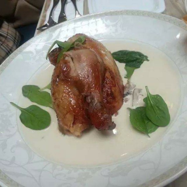 Poulet Roti(half) Rotisserie Chicken with Mushroom Chardonnay Sauce