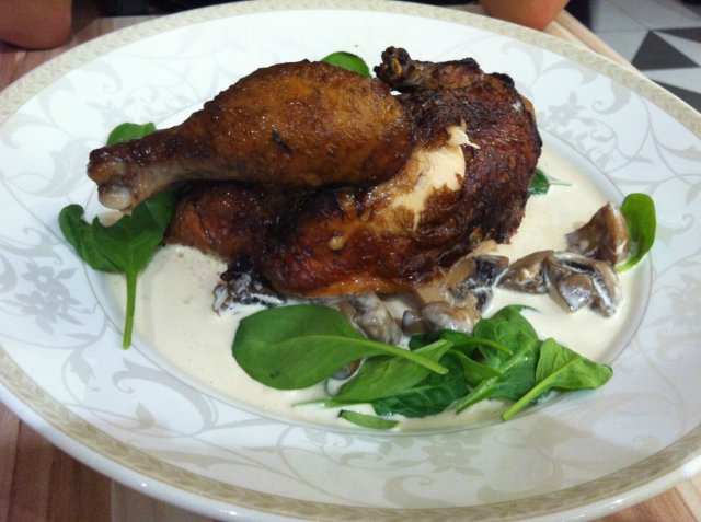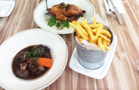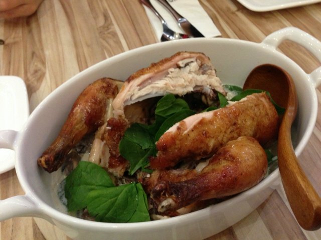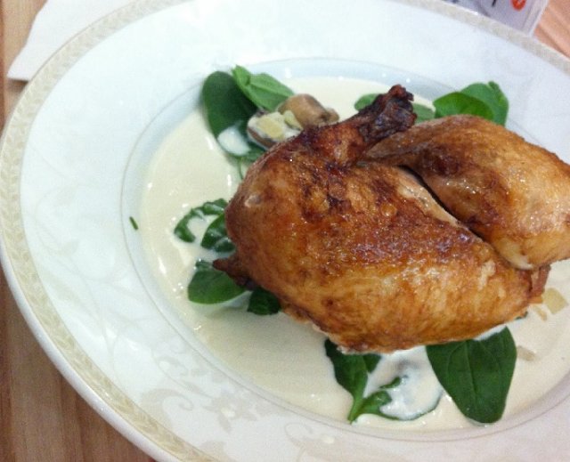 Decided to give this place a try after hearing some good reviews about it. Summary would be okay to eat but not really a first choice kind of place. The mushroom soup is super creamy! When I say creamy, I don't mean the texture (it's actually rather watery) but the cream flavour. I prefer it if I can taste more of the mushroom so that I don't feel like I'm drinking down pure cream. Their famed roasted chicken. I ordered half and it's okay. I gotta give them props for not making dry roast chicken and the mushroom sauce gives the meat some needed flavour. Otherwise, relatively normal. No! This is bad. Do not order this especially if you like escargot. I can't describe how this taste like but just weird and unpleasant. Creamy smooth mash potato is hard to get wrong. Very nice with a good amount of butter whipped in. Their tiramisu is also so-so. You get the alcohol soaked sponge cake but not enough of the chocolate to balance it. The main attraction is that it is served in a jar and that's about it. Okay to eat but don't expect any "WOW" moment. …查看更多