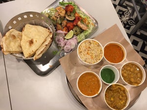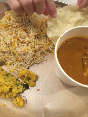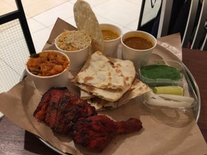 Prata Wala Cafe in Bedok Mall reminds me of an Ikea show kitchen with cheerful orange walls, wood panels and white formica topped tables. It was decked out for Christmas and we could discern popular festive jingles at the Cafe's entrance, beckoning us to step inside and rest our weary feet (after queuing one whole hour for our drinks at Starbucks).If you order a set meal, you need to pay only $1 for your coffee or teh tarik and you can choose to have it hot or iced. Well, we were holding our wait-long-long frappucinos and all we wanted was to sit down and chat so we skipped the set meals today and ordered a la carte - paper prata and paper thosai - for our afternoon tea/coffee break.We were given a palm sized timer so we could be seated comfortably while our food was prepared. Cool. About 7mins later, the timer flashed and we went to pick up our orders from the counter. Wow, the prata and thosai were HUGE - we prolly won't need dinner tonight. The paper prata $2.80 was a delectable brown colour and delightfully crispy. Good enough on its own but the rich chicken curry gravy that was served on the side was too good to waste.The paper thosai $4.00 was light as air and very crispy too. It was served with three condiments - a vegetable curry that had kentils, carrots and eggplant, a tomato chutney and a chilled white sauce containing grated ciconut. My favourite was the tomato chutney which had palate-pleasing traces of black peppercorn and cilantro.We'll return another day on an empty stomach to try the naan and briyani. …查看更多