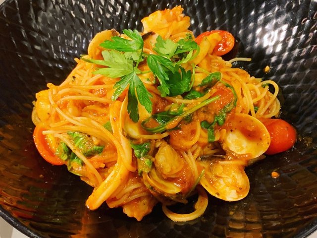 Seafood Spaghettini Arrabbiata
