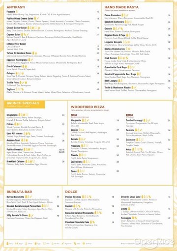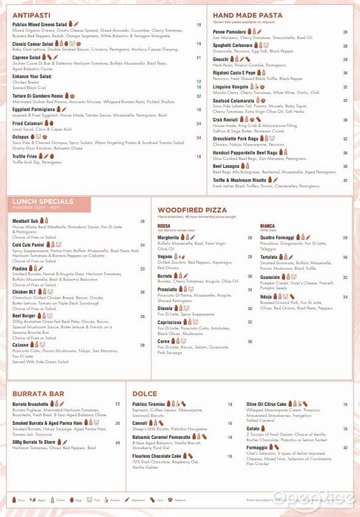水牛奶酪沙拉 / 火腿披薩 / 黑松露披薩 / 蛤蠣義大利麵 / 牛排 / 香煎鱈魚
