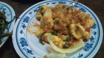Almost the only seafood restaurant on Pulau Ubin Island. It is akin to a typical "Zi Char" restaurant with ala carte dishes.Their black sauce Mee Goreng was good. Steamed Fish was very fresh. Stir-fried Tofu Beancurd on Egg served on a hot place was OK.Sambal Kang Kong tasted like any other normal ones from other "Zi Char" places back on mainland.Steamed prawns were very fresh.Verdict: Seafood was very fresh (as to be expected), and other dishes were normal. …查看更多