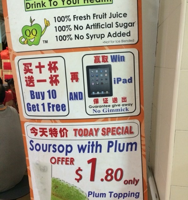 QQ Juice Ice Blend (新加坡) 網址: https://s.openrice.com/eKbSB01N60000 地址: 51 Old Airport Road Food Centre & Shopping Mall, 51 Old Airport Road #01-80, Geylang, Singapore