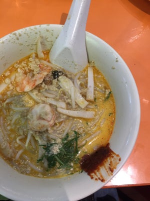 This shop not only sell curry chicken but also laksa and otah! The shop seatings is in a open area and whereby you are most likely sitting a stranger next to you. However the food there is served in a portion whereby you can definitely finish eating them. Ordered the famous curry chicken with rice, Small size laksa, 2 otahs and drinks! The price is reasonable for its portion and quality of food. The laksa has a nice aroma coconut smell and the ingredients used are fishcake, prawn and noodles are short. They provide only spoon to scoop and eat so there is no hassle to eat. And they place the chilli by the side so i can choose to mix the chilli into the noodles or not. It is delicious and same goes to the famous curry chicken, which is super tasty. The curry chicken is marinated well, tender and soft.…查看更多