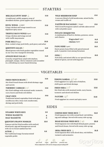 Quentin's 提供充滿現代歐亞風情的用餐體驗,採用世代相傳的烹飪秘籍打造極緻美味。餐廳周邊環境清靜,用餐氛圍濃厚,給顧客帶來全身心的享受。