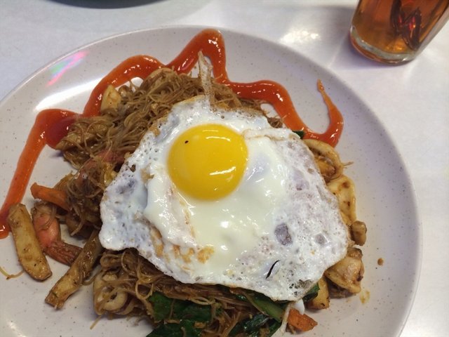 Was feeling hungry but sick of Prata so decided to try their fried seafood beehoon . Ask for kicap version (black sauce) but noodles seem lighter in colour. Ate anyway. The dish was tasty. Generous amount of noodles and seafood- which was surprising. Usually stalls or restaurants will gv 1 prawns and very few slides of sotong but here I've abt 3-4 medium prawns and some sotong slices and fishcake. Didn't ask for fried sunny side up egg but was given. Then asked for bill and the dish alone was $6.40 (including gst). Abit pricey for a mama coffeeshop I feel.…查看更多