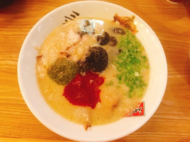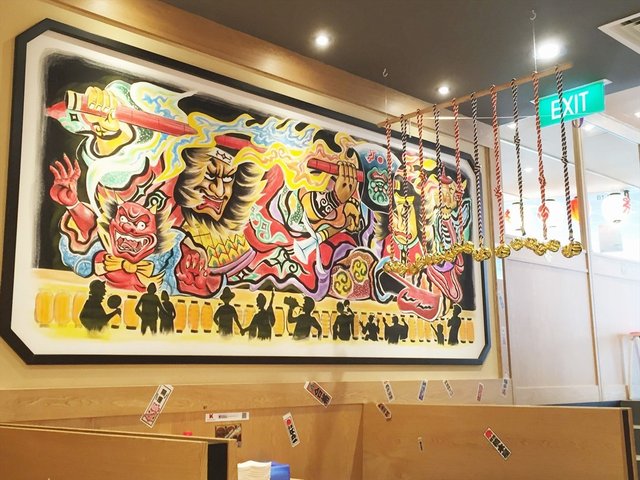 This ramen shop is a branch of the well known Keisuke Ramen chain in Singapore. It is the first outlet in the East part of Singapore. The 60 seater outlet opened in July 2014 and is based on Japanese MATSURI theme, with the place decorated in a colorful way with bright Japanese decoration around.Tonkotsu Ramen SANJA ($13.90++)Ramen 🍜with 3 different spices sauce in black, red and green.Rich with a slightly spicy soup base.Although I had selected strong soup base, it was not too salty as it was usually the case in other ramen stalls.Tonkotsu Ramen "Yukimatsuri" ($13.90++)"Miso" tonkotsu ramen with powder cheeseThe cheese melted when mixed with the hot soup, which made the soup even richer and creamier. But it also made the soup quite salty too.Served with sesame seed for one to grind to add flavour to the soup.There was also condiments such as chilli oil and vinegar on the table to help yourself to.Help yourself to the free flow hard boiled eggs and marinated bean sprouts.If you do the survey, there will be free egg for next visit. Free ice cream on your birthday.Overall food was not bad, served quite fast. It was easy to get the attention of the staffs and the place was not crowded.…查看更多
