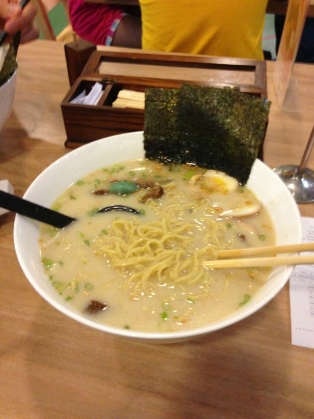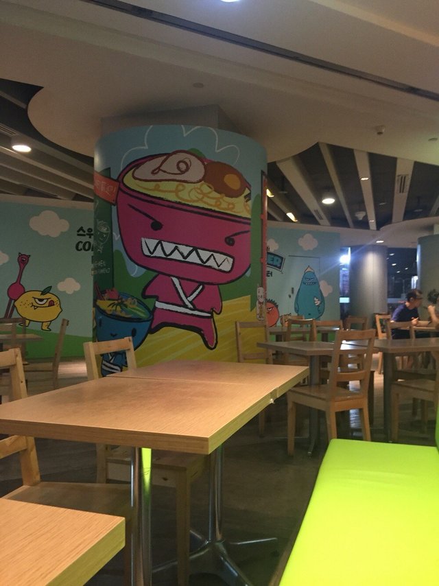 Located near the information counter, one could not help but stop to look at this outlet. It is a ramen outlet which is known reasonable prices. The outlet is decorated with colorful pictures of cute cute all over the place.Looking through the single page menu, there was limited selections of ramen and rice dishes with some side dishes. One would be given a number tag after payment at the cashier.Hirashi Chuka Ramen ($9.90)Cold Ramen. Light and Refreshing.Really cooling to have. The ramen was soaked in shoyu dressing, topped with shredded cucumber, omelette, crab stick, sesame seeds and seaweed. No matter how I mixing, the dish still tasted quite bland to me. The ramen could not soak up the flavour of the dressing.Recommended by the staff, I also topup $3 for 3 pieces of gyoza and free flow green tea and iced lemon tea. However immediately after I had filled a glass of iced lemon tea from the dispenser, the machine was cleaned up for the day. It was not even 9pm yet. Felt being short changed.The gyoza was served with a chilli oil shoyu mixture. It was juicy and meaty.Overall food was just so-so. Just the place looked cute.…查看更多