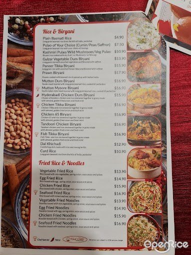 Red Chilli -The Bollywood Spices (新加坡) 網址: https://s.openrice.com/eKbSB014qm300 地址: 484 Changi Rd, Kembangan, Singapore 電話: +65 8216 0894