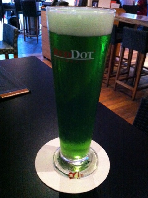 ) but no it didn't. Tasted quite normal but still it was an adventure drinking this funny green liquid.The bar wasn't very packed when I went there around 8.30pm. I quite like the toilets, because it was somewhat modeled to make you feel like you are one with nature. (Go and you will know what I mean) It's quite a contrast to the restaurant's interior. Regardless, it was a nice spot to chill with friends with its high top tables and chairs.If you are feeling adventurous, head on down to RedDot and order yourself a pint of Monster Green! They have other beers as well.…查看更多