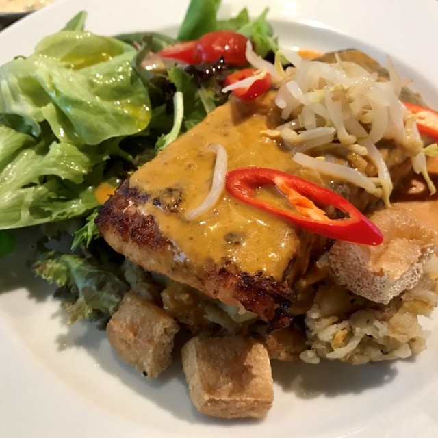 Recently the Grub which is located in Bishan Park, has opened a new outlet in Marina Square. The restaurant is located in the new wing, just above Emporium Shokuhin and behind from the main shopping stretch. Please take note of its operating hours as its kitchen is not in operation during the late afternoon till 5.30pm. During this period, only drinks and cakes are available. If you plan to dine in here during the peak dining period, please make reservation before coming. Although only 3 -4 tables were occupied when the restaurant opened for the dinner service, the staff could not accept any more walk in customers as most tables were under reservations. Such a pity which I felt.From the booklet of menu, the prices of the dishes seem reasonable priced. However as the menu was undergoing a change, the heavy main courses from the grill were unavailable, as well as, selected items such as Seafood Chowder and Coconut Panna Cotta. The restaurant was not big in space. It was tastefully decorated in shades of grey and red. As most tables were under reservations, we were showed to a table by the entrance, which was a bit annoying as most people who walked past inclined to take a peek at what we were eating. Since most of the tables occupied were by the entrance, it was easy to get the attention of staffs. Although iced water was served, it was not refilled, even when it was empty.Chicken Cheese Arabiki Sausages ($8)Smoky chicken cheese arabiki sausages with sambal mayoBeware of the hot burst of cheese when you bite. The sambal mayonnaise was very good which we wiped it clean.'Lup Cheong' Macaroni & Cheese ($12)Chinese sausage, curry leaves and cheesy bechamel tossed with macaroniThis was best share with friends, because it tasted quite jelat after a few mouthfuls. It was quite oily at the bottom.Prawn & 'Hae Bi Hiam' Pasta ($15)Tagliatelle tossed with Housemade spicy shrimp paste, Sakura ebi and sautéed prawnsThe flavour was great, slightly spicy and tangy with hint of seafood taste but a bit too dry.Overall the food was not bad. The staffs seem pretty unexperienced in the way of serving and clearing the dishes.…查看更多
