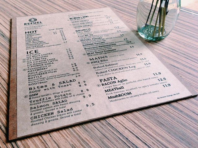 Atmosphere: 8/10Price: 8/10Food: 9/10Service: 8/10 Interior Seating Drinks Menu Food MenuWe had:Full Tank - $13.90(Bratwurst sausage, scrambled eggs, mushrooms, toast, tomatoes, baked beans and sausage)I haven't had such a fulfilling breakfast in a while, and the ones at Refuel Cafe definitely satisfied my cravings. I was in love with the buttery eggs and they had the right amount of seasoning. The sausage too, was flavorful and probably one of the betters ones I've had. The bacon was lightly salted, and the mushrooms were sauteed just right. Judging by the quantity and quality of the items served, the Full Tank is definitely value-for-money!Refuel Pancakes (With Smoked Salmon) - $11.90(Stack of 3 pancakes with smoked salmon. Other options such as bacon / bratwurst sausage are also available)The pancakes at Refuel's was similar to that of MacDonald's hotcakes, but much fluffier! I've always been a fan of Mac's hotcakes so this was a plus point to me. We opted for smoked salmon for this one, and it was really fresh! A pity that the the salmon serving was a little small :( Service:The food was served promptly, and servers were friendly!Atmosphere:The place is rather cozy, but small. The last I check, it only sits around 35 people so you might make a reservation if you're going with a big group!Toodles!…查看更多