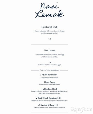 Finally tried Rempapa after years in the area! Ordered the nasi lemak set with beef rendang and grilled chicken, plus kueh kosu. The set was decent, nicely presented, but not the best nasi lemak I’ve had. Worth trying, but maybe I should try the dinner menu next time.…查看更多