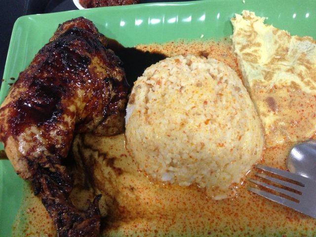 I ordered the Ayam Panggang (Grilled Chicken Set for SGD5.50), which consist of grilled chicken thigh, fried omelette, rice & soup. One special ingredient is their delicious black sauce combination with their big chicken thigh & rice. The Chicken thigh is grilled nicely with the skin crispy and a bit of charred. The meat inside is tender and juicy and when dipped with their sweet & not overly spicy chilli, make my adrenaline rush into my brain. The rice is quite soft & fluffy and they even have curry gravy option to be drenched into the rice! Even though the queue is quite long, however the service is efficient as I waited for around 5mins. Prices are reasonable given the huge size of the chicken thigh at only $5.50. Overall, this is a must try for all grilled chicken lovers!