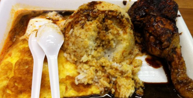 Once a favorite, it will be always a favorite for everyone.This stall never dies down as the price increased slowly for now it is $5.50 for the standard grilled chicken meal set, which includes the chicken, rice, omelette slice and the curry sauce dipped all over.The best would be how the chicken is dripping wet with the sweet kecap hitam sauce all over, left after grilling to perfectness but maintains a soft skin inside and out in the huge piece of chicken drumstick and breast together.The place is still a win afterall, and it hasn't change nor reduced its portion so it's still the place to go!
