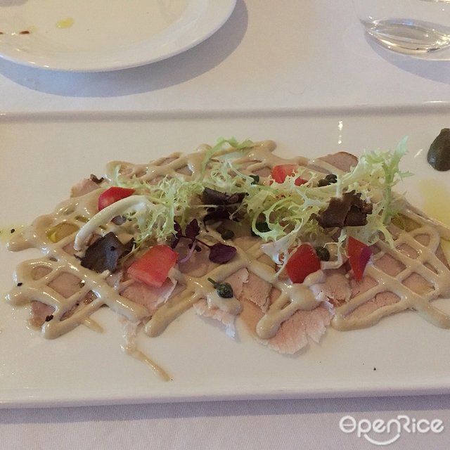 For more details, please visit http://www.foodesteem.com/2015/01/forlino-italian-fine-dining-cuisine.htmlForlino has all executive and business set lunch, and ala-carte menu. For my dining, we ordered Forlino Classic Set Menu ($108.00), and an extra main course and dessert. We also ordered a bottle of Surgiva Sparkling Water ($9.00), which I prefer distilled water over the former.Amuse Bouche is usually a single bite-sized complimentary course served by chef to give diners an idea of the approach chef has taken in his cooking. Forlino's amuse bouche has also indeed taken us further in anticipating better courses to come!Classic Set Menu: Pan Fried Foie Gras. It is similar to the ala-carte under Appetizers section, Fegato Grasso ($36.00). It has wild rocket salad, balsamic cream, and homemade panettone. First of all, I am not a fan nor a dis-liker for foie gras. Forlino has prepared their foie gras perfectly well, being a little crispy and mushy fats, almost melting in my mouth.Classic Set Menu: Homemade Chitarra Spaghetti, similar to ala-carte under Homemade Pasta and Risotto section, Spaghetti alla Chitarra ($36.00). It consists of octopus, arrabbiata spicy tomato sauce, water spinach, and Sardinian bottarga.Classic Set Menu: Pan Fried Fillet of Cod Fish wrapped in Parma Prosciutto, similar to ala-carte under Piatti principali section, Merluzzo ($42.00). Besides the cod fish, it also comes with baby cuttlefish in black ink, white polenta and zucchini Flower.Cod fish is my favorite fish of all, in terms of eating it. It is soft and can almost slide through your throat when swallowing. Forlino did not disappoint me with the cod fish. Their cuttlefish does not have the fishy seafood taste as you chew, and the combination of polenta (cornmeal boiled into a porridge) with the cod fish is just delicious.Classic Set Menu: Ivoire White Chocolate Mousse, also in ala-carte under Dessert section ($15.00).Directly ordered something out of the set menu, Duet of Angus Beef ($68.00). One of the best I had, consisting of braised short rib ‘brasato’ and tenderloin ‘rossini’ foie gras, marsala wine sauce, and ricotta spinach raviolone.Forlino's pair of beef short ribs is just so tender, although I wasn't asked how well I would like it to be. I enjoyed every bit I took, sampling the sauce absorbed and the tenderness of the meat as I chewed.Forlino's raviolone gave me the initial image of what one will see in some "bak chor mee" stalls. Something like a flat piece of dough, and a mini portion of minced meat enclosed in the middle? In any case, I am quite picky when it comes to vegetable type that I consume, and luckily spinach is one of those I favor, unlike celery.Another dessert, but ordered directly from the ala-carte menu again, Coconut Panna Cotta ($15.00), with pineapple confit, moscato jelly and passion fruit.For more details, please visit http://www.foodesteem.com/2015/01/forlino-italian-fine-dining-cuisine.htmlRead More
