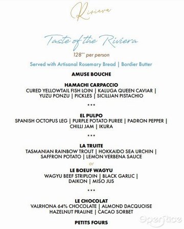 We celebrated my birthday at Riviera with a 4-course dinner, and everything was perfect. The restaurant is exquisite and one-of-a-kind, offering great views of Singapore. The staff was friendly, engaging, and courteous, adding to the wonderful experience. The food was extremely delicious! Big compliments to the chef!Read More