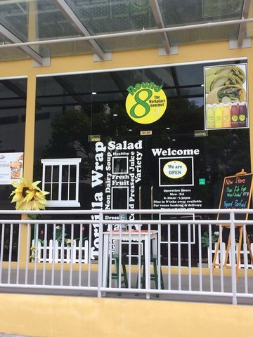 Amidst the industrial estate in Tai Seng, you find a stretch of F&B choices. Round 8, being a healthy option amongst the rest, stands out immediately!Priding themselves in cold pressed juices, DIY foods, wraps, salads, and yogurt parfaits. They also provide delivery services for those working hard at their office desk job and want something healthy!1. Thai Rib eye $9.90So once you know what you want to get, you have to choose between tortilla wraps (original, spinach or tomato & basil), then choose a protein, (beef, chicken, fish, turkey bacon, seafood or mushroom), then choose your condiments and lastly, choose a dressing from a wide variety of homemade sauces.I picked, tomato & basil, mushrooms, couscous, pasta salad, mango salsa along with the thai mayo which was recommended for my thai rib eye.It was a delightful combination. I enjoyed every bite. Filled with tasty goodness! I highly recommend trying the thai rib eye! Although I might want to ask for a hard boiled eye rather than a egg wrap.They even provide umbrellas for the convenience of customers!Their prices are reasonable too, the wraps/salads are priced around $6-8 and their cold pressed juices are $5.50 each or at $5 for a top up with a wrap/salad.2. Absolute Beauty $5.50The main ingredients were watermelon, grape & lemon. Advertised to improve heart health, improve blood flow, anti-inflammatory, antioxidant, reduce asthmatic event and prevent migraines. That's one very promising bottle of juice. At least the from the content of the drink I can indeed tell that it is cold pressed, as the fibres are not separating themselves in the bottle.3. Yogurt Parfait $4.20The staff highly recommended the nutella one and so I got it. It was filled with granola on the top, and then big round grapes in the center which took up most of the cup, and then a layer of thick nutella and the yogurt at the bottom. I personally feel that for $4.20, it's priced a bit steep, but it is a yummy dessert to go with your salad!The staff were very friendly and helpful in recommending items to be added into our lunches. All in all, I love this place and the concept! Eating healthy doesn't always have to be expensive!…查看更多