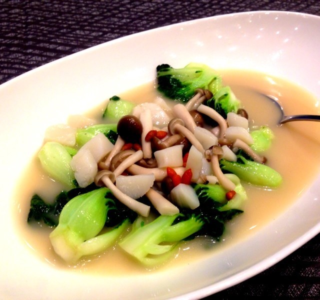 Baby kailan with mushroom and scallop