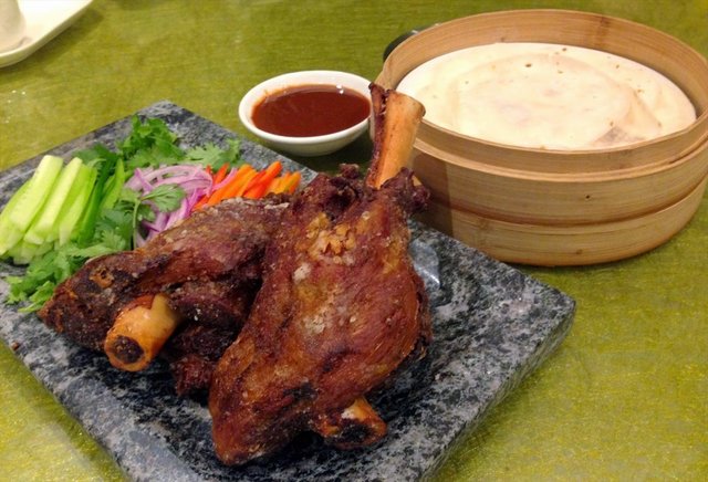 Cantonese fine-dining restaurant Royal Pavillion ushers in the lunar new year with an array of Chinese New Year dishes that are created by the brand’s Director of Kitchen & Operations, Mr RayTso, from Hong Kong. Full review on http://dairycream.blogspot.sg/Arranged like a fish in a beautiful golden bowl, the yusheng (S$68/$88++) may not be as extravagant as most fine-dining restaurants these days but all the necessary ingredients playing their roles dutifully. This dish stayed true to tradition, with plenty of fresh crisp golden crackers as well as a sweet-tangy apple and plum sauce.Since this is the Year of Goat, Royal Pavillion has introduced this ingeniouslamb dish for CNY. The Royal Fried Lamb Shank (S$48++ for up to 4 guests)seemed like a cross-fertilization between German Deep Fried Pork Knuckles andBeijing Roasted Duck. Wrapped in a traditional crepe with red-green pepper, springonions and hoisin sauce, the shredded lamb had some nice crispiness dependingon the parts you get, without the awful gamey taste. However, some expressedthat the meat was too dry and did not spark any excitement in them. RoyalSmoked Duck (4.8/5)Voted as one of the Top 10 dishes of the Year by Zao Bao last year, this RoyalSmoked Duck ($35/$68) trulydeserved the royal spot in the hall of fame because the meat is simplydelectably tender and flavorful. What wins further respect was the fact thatthe 4-5 month young duckling had only been smoked for 45 minutes with lycheewood but achieved such a remarkable distinction between the layers of fattissues and paper-thin crispy skin. It's already a winning stand-alone dishwithout the sweet plum dipping sauce! There are so many ways that can go wrong when nian gao are served as desserts; too starchy, sticky, greasy, sweet, etc, but the Pumpkin Nian Gao (S$18++ for 10 to 12 guests) managed to steer clear away from them. Coated in beaten eggs before being pan fried, each square sliced to perfect thickness is chewy but does not stuck to your teeth, with alight whiff of egg fragrance that lingers on.Though this is the first year that Royal Pavilion is launching its Chinese New Year creations, the dishes are donned with a touch of elegance and prosperity that marked a good start to the future CNY creations. Full review on http://dairycream.blogspot.sg/…查看更多