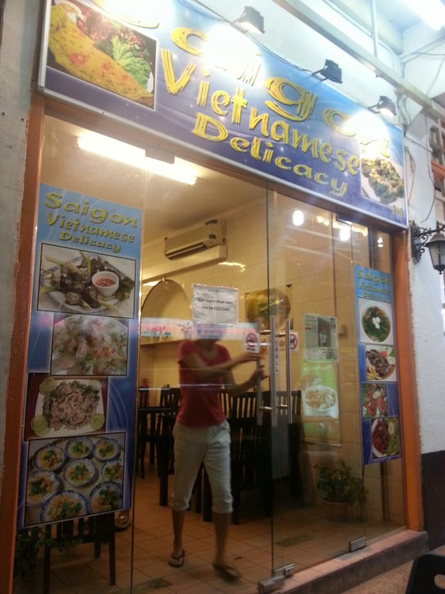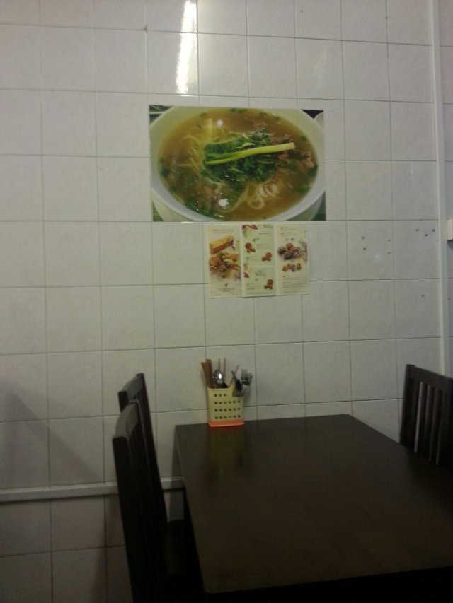 It looks like a authentic vietnamese restaurant from some of the Facebook postings seen online. The shop is also blessed by some vietnamese priest. there are 2 outdoor seats and the rest are indoors. When we were there there was a huge group of vietnamese students i think, speaking in their native language. Anyway i got to know that the owner married a Vietnam wife and its the wife that helms the kitchen now. They are assisted by an old lady whom i guess is the mother. Now to the food, fried ong choy is actually our kang kang $5, interesting to have this veggie stir fried instead of sambal style, not too bad. Chicken wings were nice, coated with what seemingly feel abit like marmite coating. The spring rolls $2.80 for 3, were average though, losing out to the NamNam noodle bar type. Beef pho $6.50 was also average only with lots of green onion and onions added. There was an interesting grass jelly coconut $3 though, recommended for those with a sweet tooth. Also don't order the cheap vietnamese tea at $1, its tasteless. Overall i would just rate this place average, with quite a slow service and long waiting time despite not being crowded, i will probably not return again.…查看更多