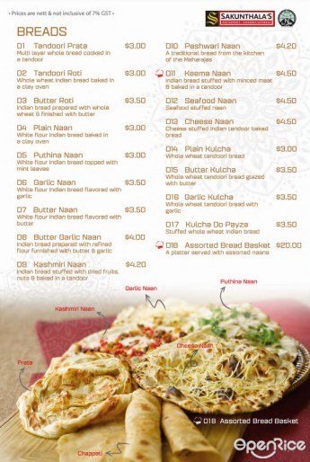 lain Naan (a la carte $3.00)White flour Indian bread baked in clay ovenKashmiri Naan (a la carte $4.20)Indian bread stuffed with dried fruits, nuts and baked in tandoorTandoori Jhinga (a la carte $18.00)Fresh prawn marinated and grilled in the tandoor ovenFish Tikka (a la carte $14.00)Cubes of fish marinated with exoctic spices, grilled in tandoor ovenChicken Tikka (a la carte $14.00)Boneless chicken nuggets, marinated in tandoori masala & yogurt, grilled in the tandoor ovenChickenChicken Malai Kebab (a la carte $14.00)Chicken marinated with cream and grilled in the clay ovenFish Malai Kebab (a la carte $14.00)Tender and creamy clay oven baked fish cubesThe grilled meat was tender and flavourful, while the bread was soft and fluffy.Meals ($4.50)White rice served with two vegetables, chicken gravy, rasam and buttermilkIt was served with fluffy white rice, vegetable dishes, and gravy, making it a simple and tasty meal.Biryani Rice ($3.00)Basmati rice cooked with saffron and aromatic spicesThe rice was fragrant and light.Don't forget to help yourself with some of the mouth refresher at the cashier, on the way out.…查看更多