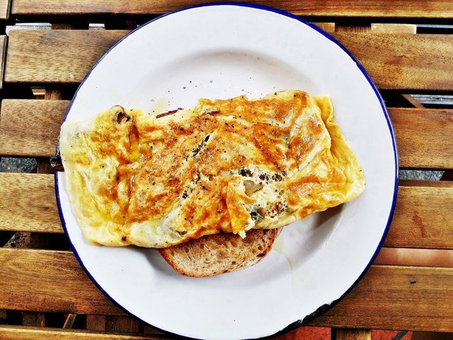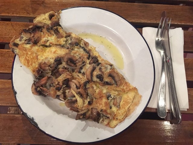 The cafe was located just a 5 minutes walk from the MRT station. The place was packed during weekend with limited indoor and outdoor dining in area. They ran out of bread soon after I ordered. Remember to collect a poker card number tag after making payment.Omelette with cheddar, mushrooms & onions ($21)Served in a metal plate, with a slice of bread underneath.A bit tough to slice the bread. The omelette left behind a layer of oil. Somehow reminded one of pan fried egg with onions at home with its char edges. Could not taste the cheddar in it.Latte ($5)Quite rich with a slightly chocolaty and bitter taste.Overall the food was not bad. Place was crowded and quite noisy too.…Read More