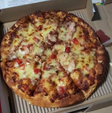 My family decided to dine in for dinner today and we ordered Sarpino's pizza! They are currently having a 1 for 1 promotion on a few selected pizzas. We ordered 2 of that and a gourmet pizza to share among us. The chicken wings set consist of 4 mid-joints and 4 drumlets. There is a choice of dip between bbq, sweet chilli and cayenne rub. We chose cayenne rub as it was something new. The chicken wings looked very burnt but the taste is nice, and I love the flavour of cayenne rub, it has a little spice and peppery taste. The Aloha consist of turkey bacon and sweet pineapples topped with mozzarella cheese. Personally, I dislike the taste of pineapples, so i remove it all and ate the pizza slice with turkey bacon and cheese. However, if you're someone who loves pineapples, e.g. my mom, you will definitely love this pizza! The Boston Supreme is one of the Gourmet Special category of pizzas and it consist of oregano chicken strips, turkey ham, fresh garlic, spinach leaves and turkey bacon on top of mozzarella and cheddar cheese. The San Remo consist of grilled oregano chicken strips loaded with roasted red peppers, parmesan and mozzarella cheese. My favourite pizza out of the three! …查看更多