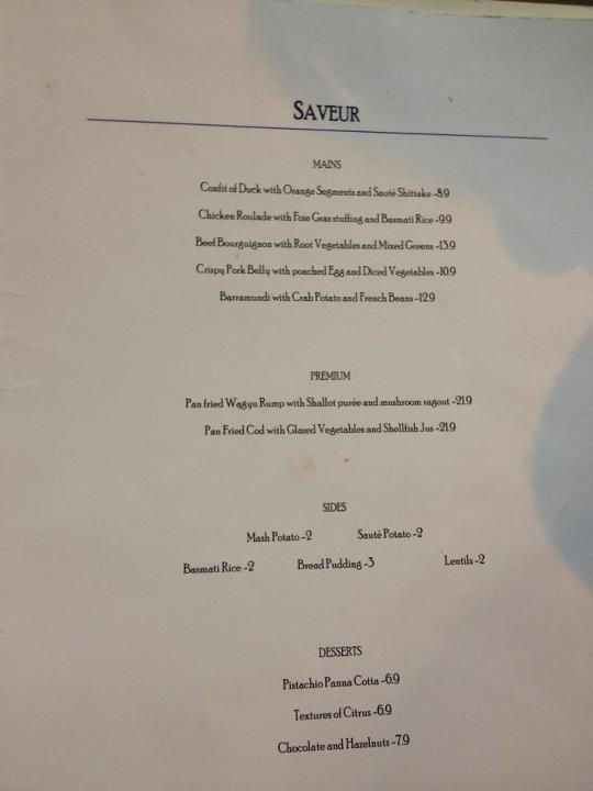 Duck Confit is the most popular dish, and it so happened that all 6 of us had that for lunch. Fluffy mashed potato was great, with surrounding pieces of mushrooms, and the duck meat was tender with crispy outer skin. The citrus dessert, although something unique, wasn't to our liking, while we felt a bit 'jelat' after halfway through the pistachio dessert. Saveur used to be cheaper when it was located at East Coast, I guess the rental may be higher now, considering they have expanded their shopfront.…查看更多
