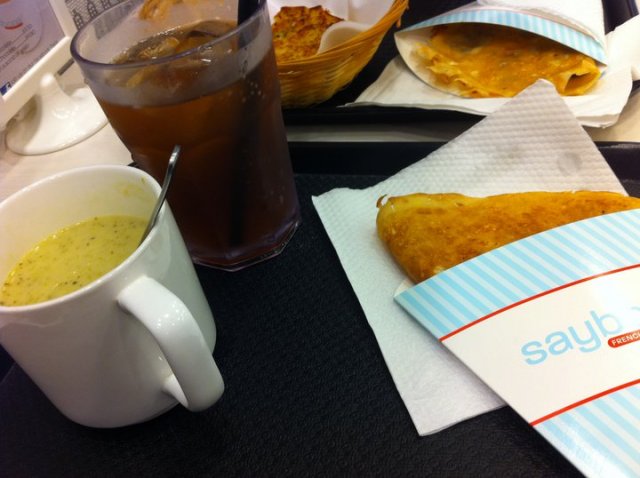 Bought a set of the Mushroom Crepe with drink and soup from this famous crepe outlet at bishan. The crepe was simply soft and fragrant and is moist and chewy. Generous amount of thinnly sliced mushroom are topped inside it which is fragrant and delicious. With generous amount of melted cheese inside which make 8t very tasty too. The mushroom soup was alright but could be n8cer if is thicker in texture. Service was friendly and fast. Restaurant is clean and neat too. Less than $12 is cheap.…查看更多