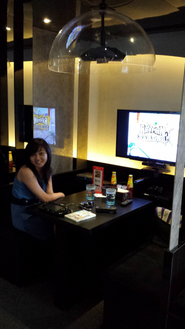 Good:- Each table houses its own devices for you to play. The sound system is built in such a way that you will not be disturbed much by another table's gaming.- Allows you to play while eating at your own pace. You can even watch a movie as you eat as DVDs are provided for you to choose.- Multi-devices available to play with at each own station. Devices include Playstation, Xbox and Wii.Not-so-good:- Food is average. Ordered the pork chop which was kind of dry and a little tough. Also ordered a cheeseburger but the beef patty taste dry as well. Have tasted juicier ones outside.- Limited number of games. Standard ones include sports games such as NBA and FIFA. Wii games are quite standard as well such as Raving rabbits, mario karts, wiisports etc. Ended up just playing raving rabbits as that is the most interesting a couple can play together.Overall:The experience is interesting but will probably not return again since the games are limited and the food is average.…查看更多
