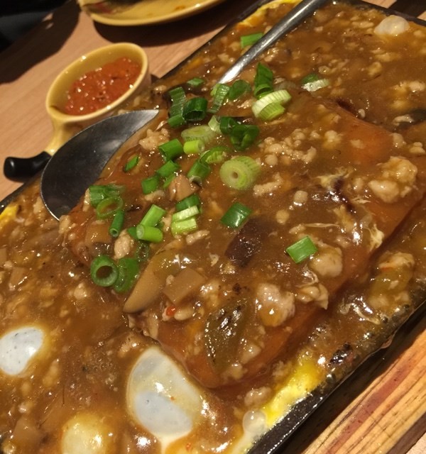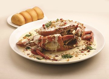 Seafood Paradise's outlet at the Singapore Flyer is the most well appointed among its four outlets. Coupled with its central location and pocket friendly prices of its ala carte dishes, even diners with reservations can expect to wait awhile to be seated on weekends and holidays.If I am to order just one dish to go with rice, it has to be their signature Fish Head Curry Casserole $18++ which is available only for lunch on a while stocks last basis. The fresh red snapper fish head is cooked to a family recipe with lots of coconut milk, okra, eggplant and deepfried beancurd pockets (taupok), making it a balanced one dish meal with protein and fibre. The rich and scrumptious gravy goes perfectly with a bowl or two of piping hot plain rice, or with a basket of deepfried Chinese buns (mantou) to mop up the concentrated gravy. The casserole is served atop a portable stove to keep the curry simmering and any (unlikely) fishy smells at bay. The portion is big enough for three or even four diners if no other dishes are ordered. However it can serve up to eight to ten aif other meat and seafood dishes are ordered as well.We ordered the prawn roll (ngoh hiang) $8.90++ and the cuttlefish with kangkong $14.90++ as appetizers to be shared among the four of us. Together with the fish head curry and rice, we had a very satisfying meal.…查看更多