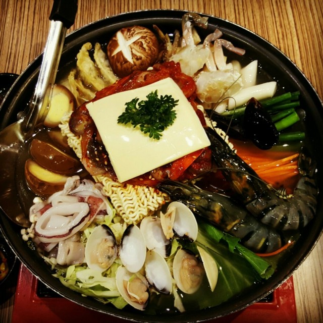 There are lots of choices here. The set meal is very worth it as it comes with dessets and a side dish. Taste wise, the army stew is so so only, despite having chesse in the hot pot, which kinda makes the soup a bit sticky and thick. To me, it has too many flavours and none stand out. Really taste like rojiak. I prefer to have Chinese steamboat.The stewed pork is a real surprise though. The meat is very tender and flavoured. It must have been stewed for a long time. We loved it.The rest of the dishes did not wow us as they were just passable. Service was ok. I dropped a chopstick and asked for a new one. It was swiftly replaced. …查看更多