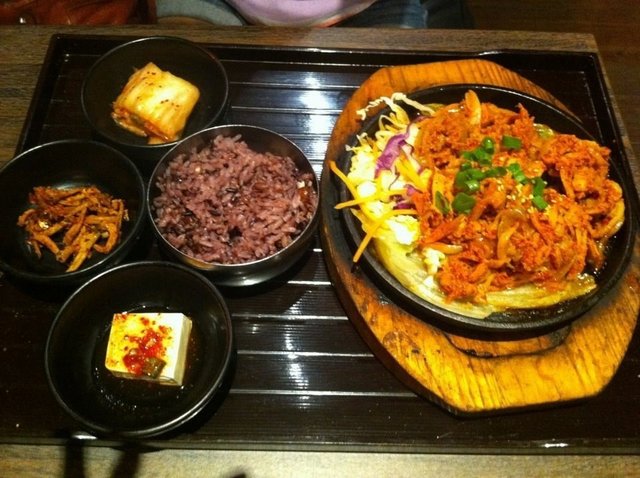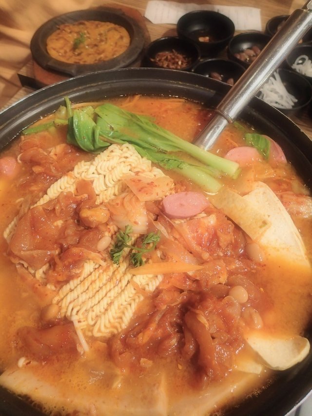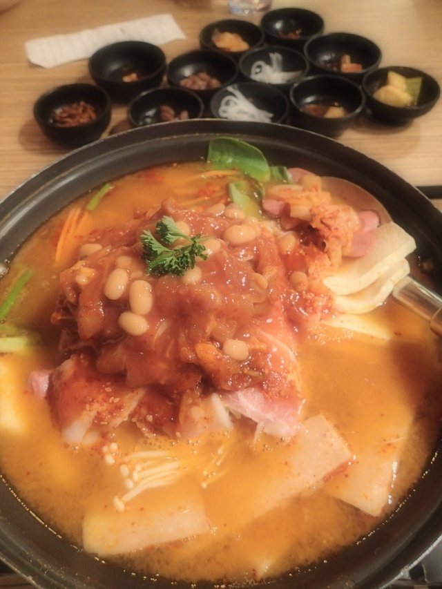 There are lots of choices here. The set meal is very worth it as it comes with dessets and a side dish. Taste wise, the army stew is so so only, despite having chesse in the hot pot, which kinda makes the soup a bit sticky and thick. To me, it has too many flavours and none stand out. Really taste like rojiak. I prefer to have Chinese steamboat.The stewed pork is a real surprise though. The meat is very tender and flavoured. It must have been stewed for a long time. We loved it.The rest of the dishes did not wow us as they were just passable. Service was ok. I dropped a chopstick and asked for a new one. It was swiftly replaced. …查看更多