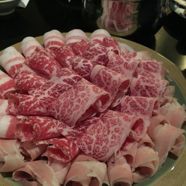 Shabuya is one of many restaurants under Creative Eateries. It is known for its high quality meat and Japanese Shabu-Shabu (steamboat).At 6pm, we are notified that the restaurant is fully booked even though it has just opened for business. Although the restaurant is quite fully booked, we are lucky are to get a booth table as the table is reserved for a 7.30pm booking. Since the restaurant is known for its meat, we decide to have Kurobuta Pork Shabu-Shabu for 2 set meal, which costs $68.80++.The set comes with different cuts of pork : Kurobuta Pork Belly, Kurobuta Pork Loin, Kurobuta Pork Jowl. As the meat is quite thinly, it is easily cooked with just a few swirls in the hot dashi (broth). Just dip the cooked meat in ponzu or goma (sesame seed) sauce before eating and it tastes extremely tender and juicy.Besides the assorted cuts of pork, the set also have Assorted Vegetables, udon and plain rice. The vegetables and udon absorbed the full flavour of the dashi, and taste quite soft and flavourful.The set also comes with Shabuya Salad, which is served lightly dressed.Lastly we end the meal with sweet and cold mochi ice-cream.Overall the food is served very fast and tastes great. Service is also very good here as used empty plates are cleared quite fast. If not for the prices, I would like to come here often.…查看更多