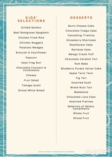 The buffet here had such a wide range of dishes that we didn’t even know where to start! The Laksa was definitely a highlight – rich, flavorful and so satisfying. We also enjoyed the Indian dishes, which were just as fantastic. The dessert corner was a real treat too, with all sorts of cakes to choose from. The bread pudding and crème brûlée were both delightful, while my kids couldn’t get enough of the ice cream and candy floss.What really stood out, besides the food, was the service. The staff were all so friendly and attentive, always clearing plates promptly and making sure our water was refilled. It made the whole experience even more enjoyable.
