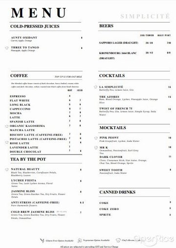 The concept is simple and clean, the fresh aromas of coffee, a bite of pastry, a fulfilling meal, and a great space to feel at home. Serving up comforting Modern European style cuisines, Simplicité is our love of a time and space taken shape.