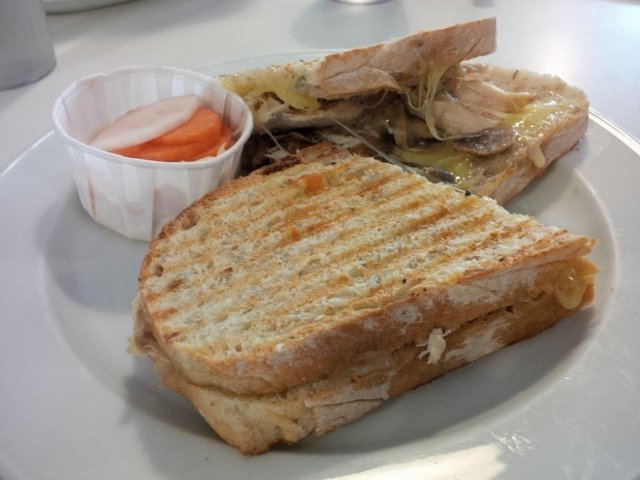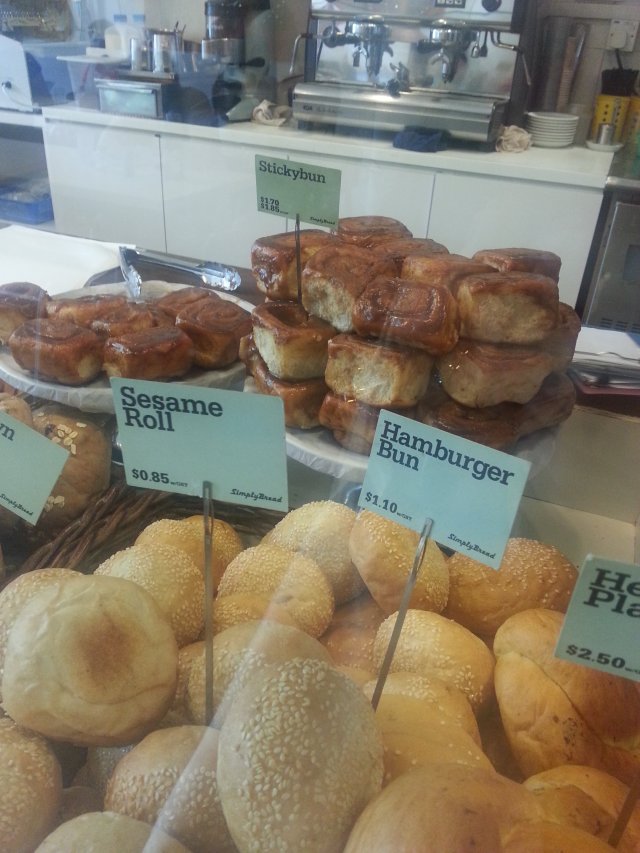 After leaving a client's office premise, *Lynette, *Ivan and I decided to have lunch at Simply Bread. Located at One Fifth Avenue, #01-03 Guthrie House, Singapore 268802, the number for this quaint little bakery cafe is 6466 7767. The spacious cafe was rustic in design, furnished in a simplistic yet cosy manner - a brightly-lit and welcoming room that seems to beckon its patrons in.My Corn Cheese Potato Roll (SGD$1.65) was served first (ok, I had to bring it to my own table because they just took it from the display of pastries, duh). While the taste was rather flavorful and the texture was rather soft, with a pleasant chewiness lent by the layer of coated dried cheese, all of us were of the general concensus that this bun would taste much better if warmed / heated up.*Lynette had their daily special - the Grilled Roast Chicken with Mushroom sandwich (SGD$10.30). The chicken was rather tender but the overall taste of the sandwich was bland; and the bread was hard instead of being toasted to crispiness.*Ivan tried one of their breakfast sets - the Bacon Brunch Plate (SGD$12.75) - which consisted of two slices of crispy toast, average scrambled eggs (he thought that the ones served for McDonalds' Big Breakfast are better) and a plate of crispy but not overly-salty bacon. The bacon strips were tasty but the ones they serve here contained a lot of fats. This "brunch plate" had the talent of tasting exactly how it looked.For more detailed information and photos, please feel free to visit:http://thearcticstar.blogspot.sg/2014/04/lunch-at-simply-bread-guthrie-house.html…查看更多