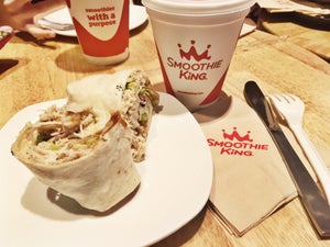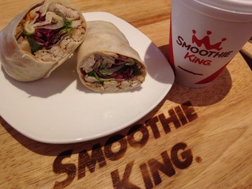Recently, Smoothie King rolled out lunch deals to attract the lunch crowd and so for a very a affordable price (considering it comes with a smoothie is quite value-for-money since a smoothie costs >$6), customers can choose between salad and wraps and a smoothie of their choice.So i got a grilled spicy chicken wrap along with a smoothie. Although it seems a little bit small, but its actually pretty filling if you drank it with the smoothie. The wrap is not too dry and it comes stuffed with a few lettuces. Overall i think it is not too bad and it wasn't too hard to eat either. (Some wraps are so big where you take one bite and the stuffings seems to just drop). Smoothie is great as usual! I love the smoothies at SK. It was quite quiet although its like 12+. Great place to chill and have lunch if you hate to squeeze with other office-goers during the lunch hour.…查看更多